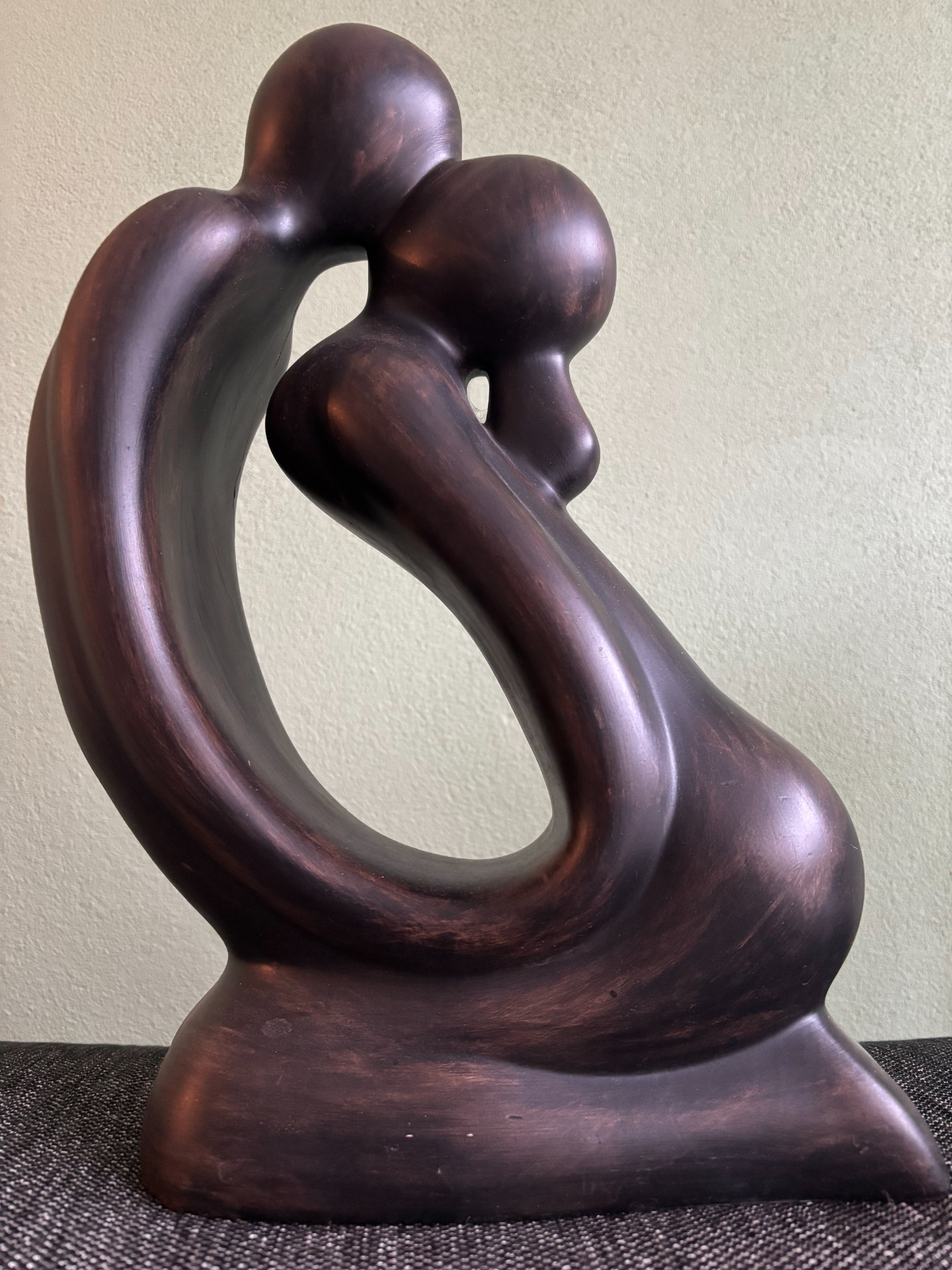 In de afgelopen jaren ben ik steeds meer met yoga, meditatie en reflectie gaan doen. Toen daar ademhaling en aanraking bij kwam, voelde voor mij het cirkeltje rond. Helemaal toen ik thuis kwam van mijn eerste kennismaking met tantra en naar onderstaand beeld keek. Dit beeld heb ik al jaren en ik word er altijd blij van. Dit beeld heb ik vanuit liefde gekregen. Het beeld is zelfs een keer gevallen en toen met liefde weer gelijmd. Voor mij is dit beeld verbinding, aanraking, samensmelten (kan ook door ademhalen i.p.v. een kus) en rust in jezelf. Dat is voor mij waar tantra over gaat; meditatie, ademhaling, aanraking, yoga en reflectie.